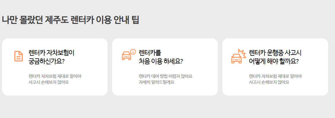 제주도 렌터카 플랫폼 사이트를 보시면 아래와 같이 다양한 이벤트와 이용안내 등을 상세하게 확인 가능합니다.